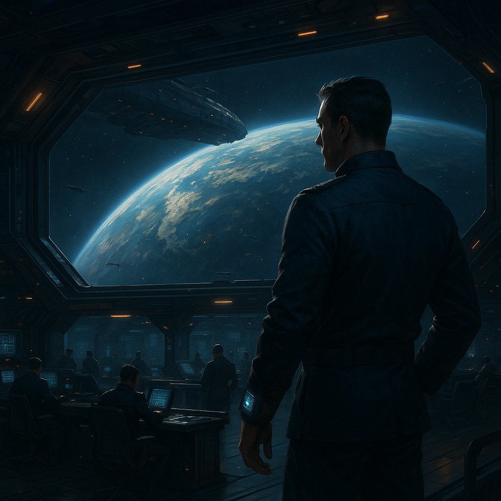 “The engines of the idle ship hummed constantly as it stayed anchored above the lonely planet on the edge of the Tesh Empire and the demilitarized zone…”