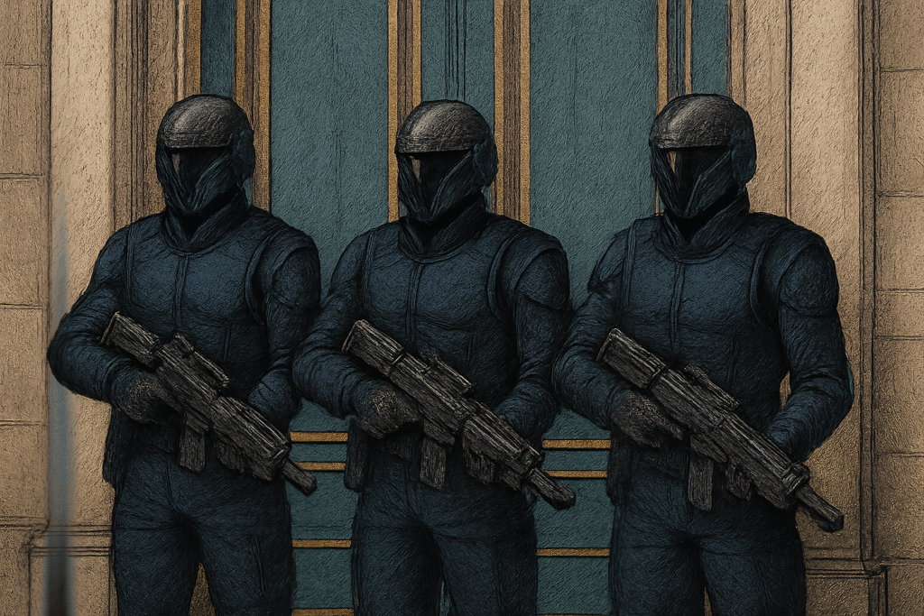 “Shouting erupted in the narrow hallway, with each side holding the other a trigger away from bloodshed…”